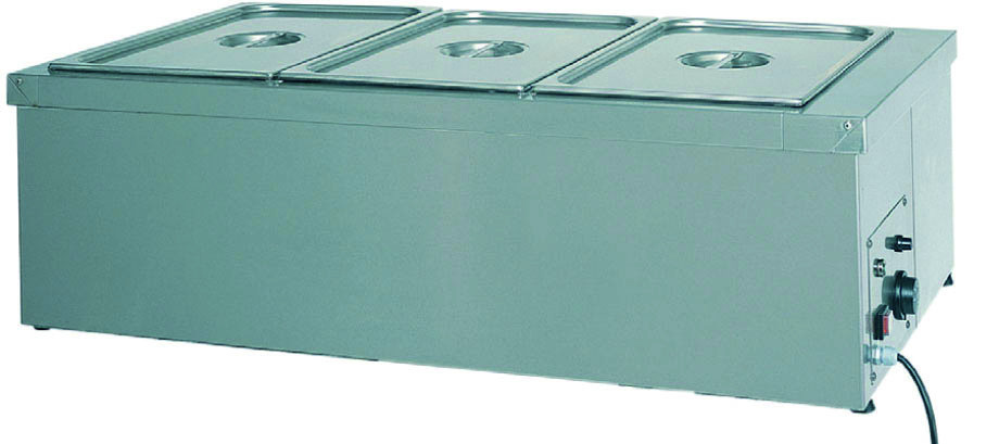 Tavole calde con resistenza a secco (senza acqua). Struttura in acciaio inox AISI 304 – parete coibentata- termostato regolabile. Le bacinelle sono escluse