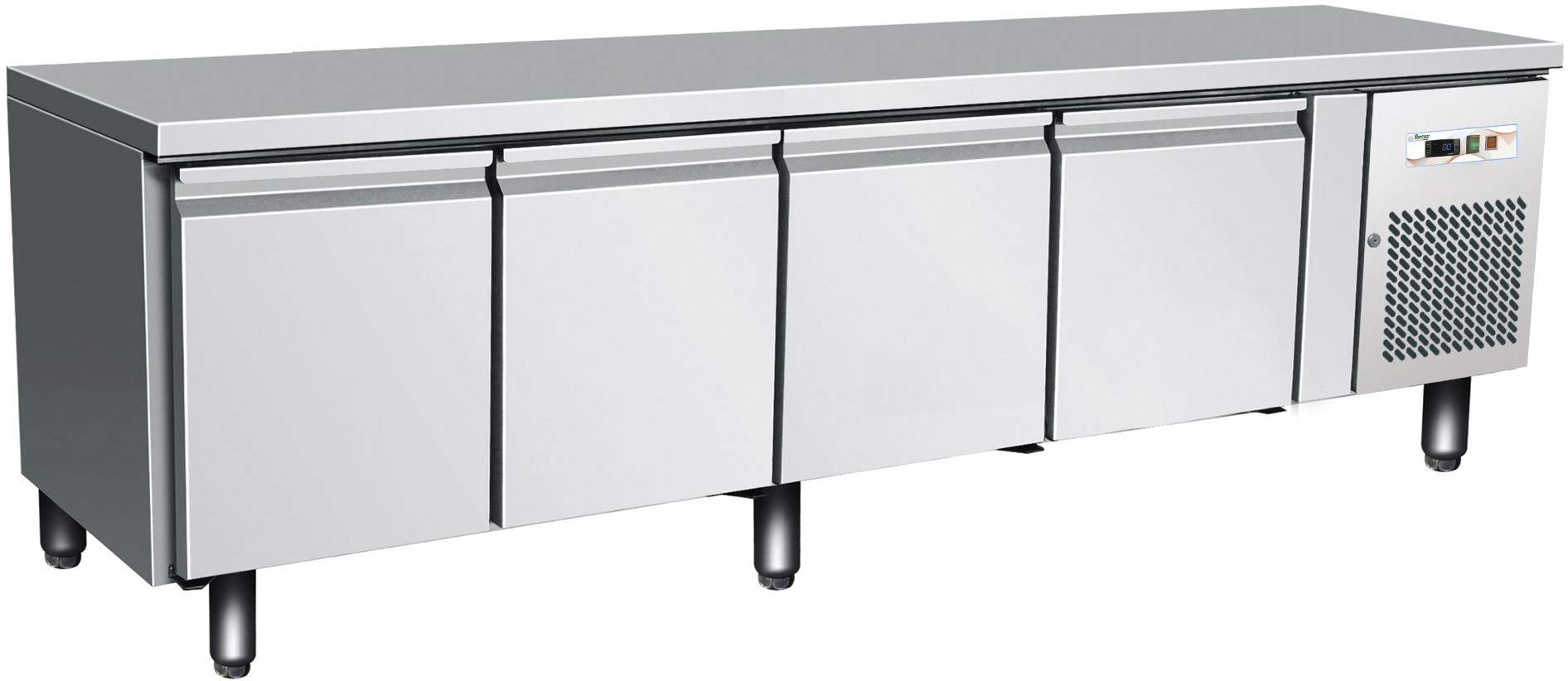 Tavolo refrigerato gastronomia – GN1/1 – altezza 65 cm. Tavolo refrigerato gastronomia GN1/1 in acciaio inox AISI 304 – gruppo incorporato estraibile per facile manutenzione – andamento circolare dell’aria fredda in modo da non toccare direttamente il prodotto – controllo temperatura elettronica con termostato digitale – resistenza elettrica intorno alla cornice porta per eliminazione della condensa – sbrinamento automatico con resistenza elettrica e controllo automatico della temperatura di sbrinamento – evaporazione automatica dell’acqua di condensa – evaporatore trattato anticorrosione. Porta con molla di ritorno – guarnizione porta estraibile senza utensili – fondo con angoli arrotondati – facile intercambiabilità porte con cassettiere da due e tre cassetti – cassettiere facilmente estraibili con guide telescopiche in acciaio inox. Piedini in acciaio Inox AISI 304 regolabili in altezza – schienale in acciaio inox – possibilità di appoggio al muro. Kit optional di coppia guide per griglie, griglie plastificate, cassetti e kit ruote.